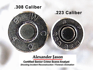 Latest press reports now describe the cartridge case as a .308 caliber. -- which is very different from a .223 and very easy to distinguish (see above.)